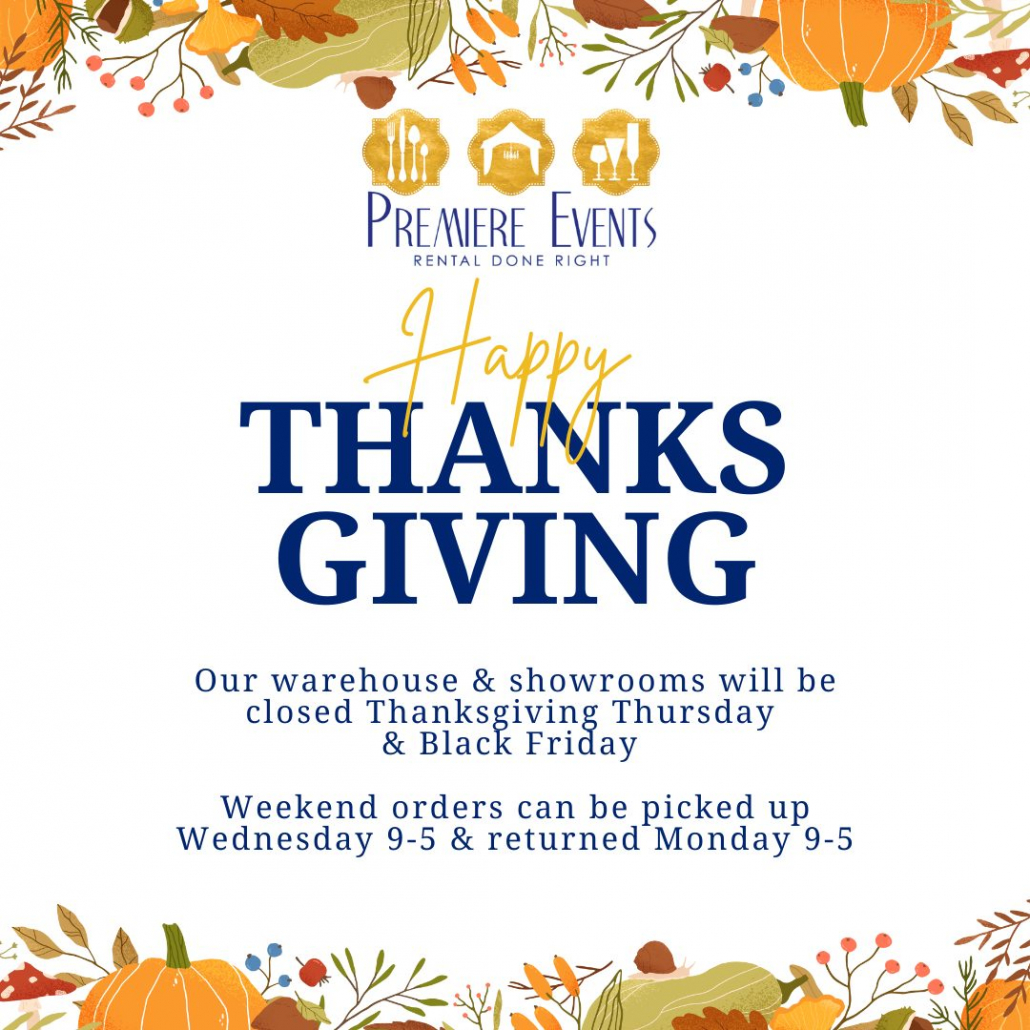 Our phones are answered and our online chat feature is live during store hours: Monday-Friday 9:00 am to 5:00 pm and Saturday, by appointment only, from 9:00 am to noon. We’ll generally respond to emailed “Contact Us” forms on the same or the very next business day. In peak demand seasons, you’ll receive a delay notice when needed. Members of the Premiere Events team are happy to prepare a quote for your rental selections. If you’d like to schedule a showroom appointment, we’ll gladly set aside a time to chat with you. Making special advance arrangements to visit during showroom hours ensures you’ll have our undivided attention. You’re welcome to browse with no preset appointment time, but please be prepared to wait patiently while we conduct business with our scheduled guests. We’ll get to you as soon as we can!