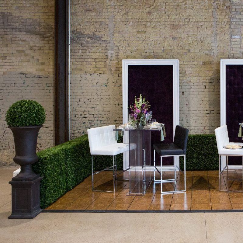 Dimensions: 36″ W x 18″ D x 42″ H Seat Dimensions: 36″ W x 16″ D x 14″ H (Seat height is 29″ from the ground up) Foot Rest Bar: 12″ from the ground up