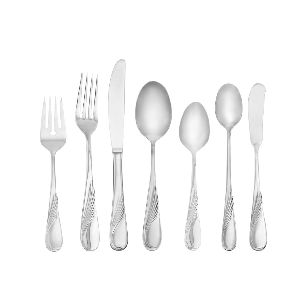Featured (left to right): Salad Fork, Dinner Fork, Dinner Knife, Soup Spoon, Teaspoon, Iced Teaspoon, Butter Knife