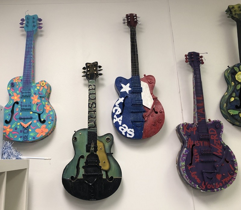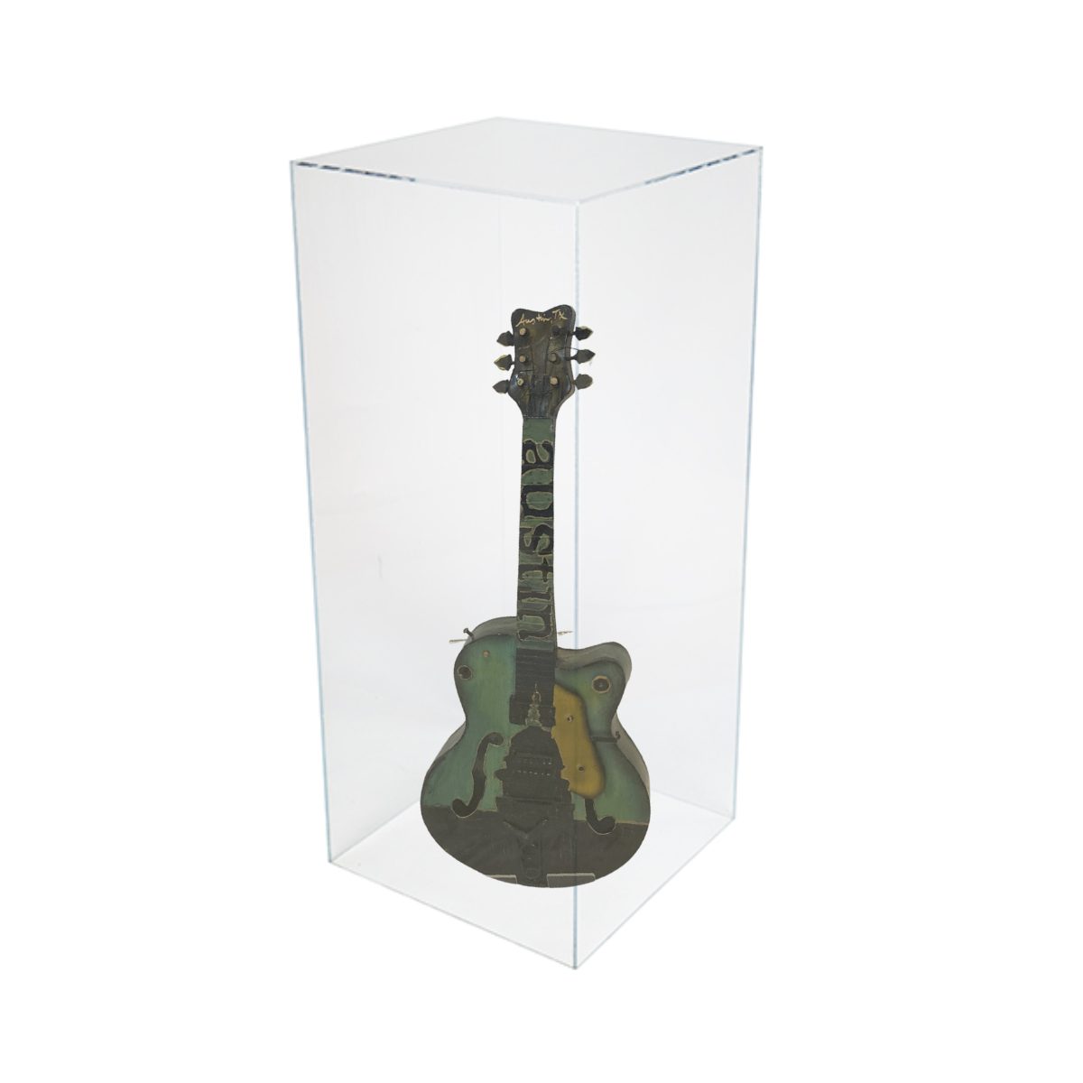 A variety of Guitar Art Pieces are available to be featured in these lucite cocktail tables. Ask about our selection today!